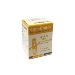 Package contains a BeneCheck Multi-Monitoring meter, total cholesterol test strips (10pcs), uric acid test strips (25pcs) and ErgoLance 30G safety Lancet (1oopcs)